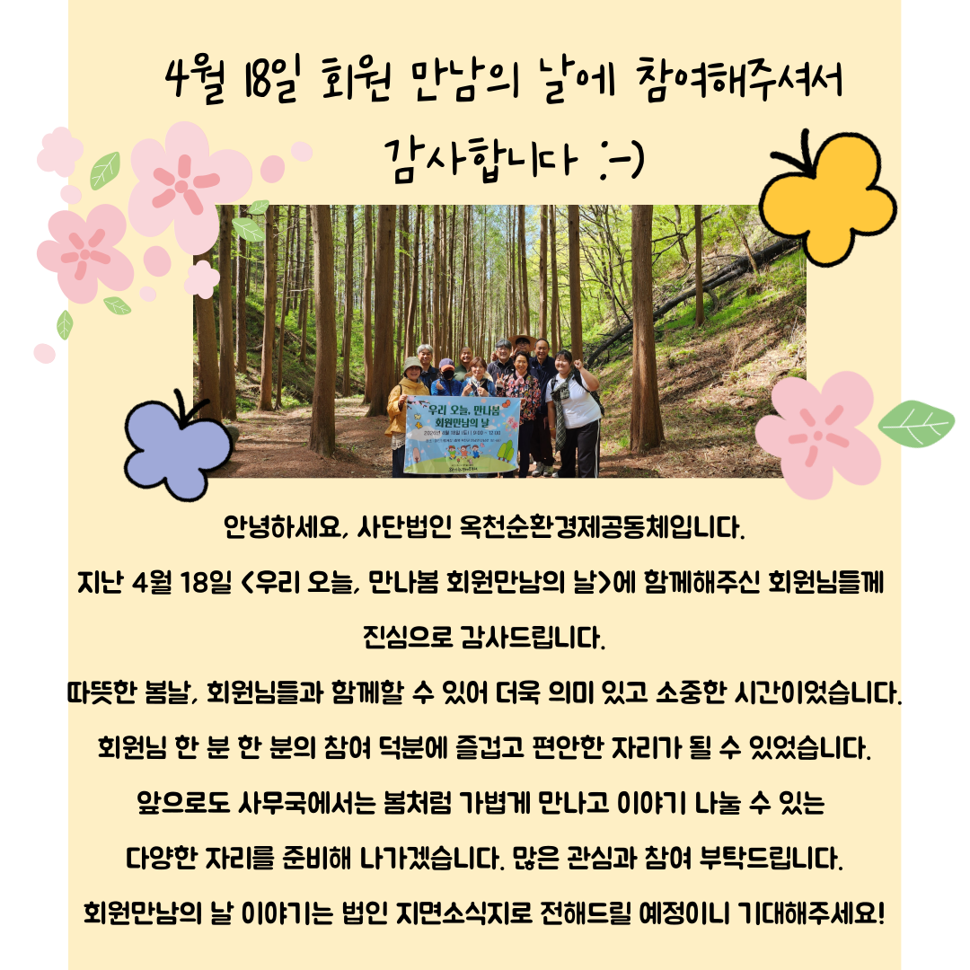 지난 4월 <우리 오늘, 만나봄 회원만남의 날>에 함께해주신 회원님들께 진심으로 감사드립니다.