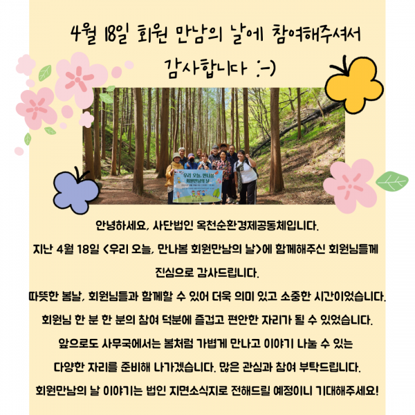 따뜻한 봄날, 회원님들과 함께할 수 있어 더욱 의미 있고 소중한 시간이었습니다.